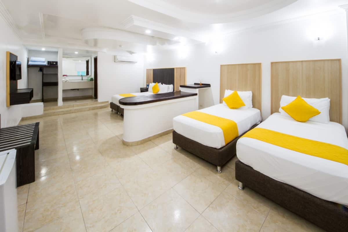- Habitación Cuádruple Habitación triple tiene capacidad para alojar a 4 personas, lo que la hace ideal para familias o grupos pequeños. Mínimo 3 personas Detalles: Aire acondicionado TV por cable. Cajillas de seguridad. Teléfono fijo. Baño privado.
